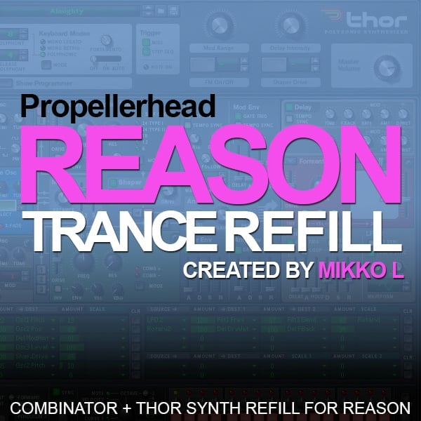 Sound designer Mikko L releases his latest Reason Refill Refill packed full with over 70 Combinator patches for Trance producers. Synth sound categories include many patches created using Thor covering basses, pads, leads plucks and arps.